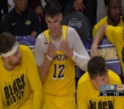 体育播报2月11日宣 NBA常规赛,湖人对阵马刺。第三节进行到4分多钟,拉拉维亚抢篮板领到个人第六次犯规,被罚下。...