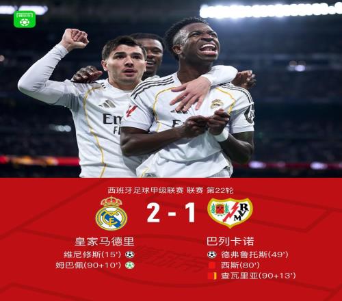 北京时间2月1日西班牙足球甲级联赛 联赛 第22轮,皇家马德里主场对阵巴列卡诺。皇家马德里维尼修斯破门,姆巴佩...