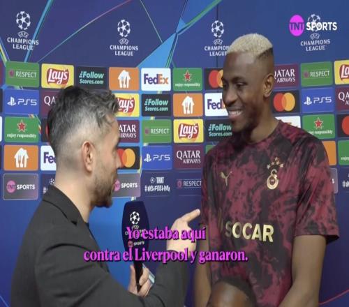 欧冠淘汰赛附加赛首回合,加拉塔萨雷主场5-2战胜尤文图斯,加拉塔萨雷前锋奥斯梅恩赛后接受了TNT体育墨西哥频道...