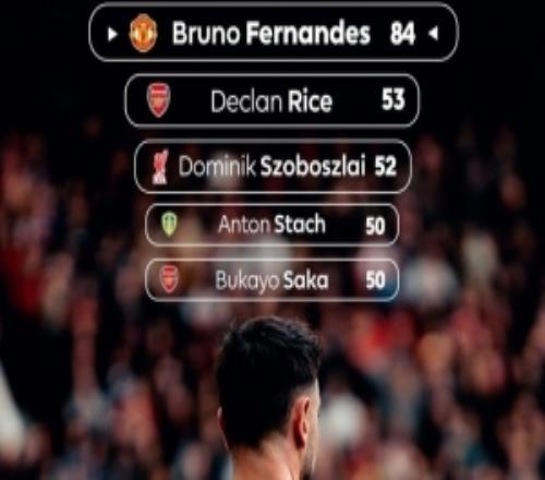 英超官方晒本赛季创造机会榜:B费84次遥遥领先,赖斯53次第二