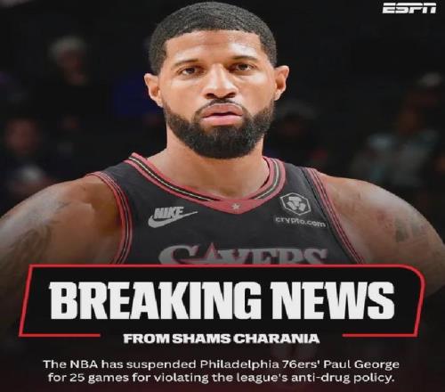 爆料王Shams:乔治因违反联盟禁药政策将被禁赛25场比赛......该消息已经得到NBA官方的确认。