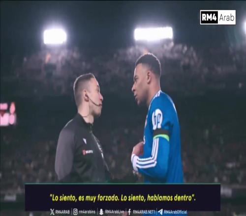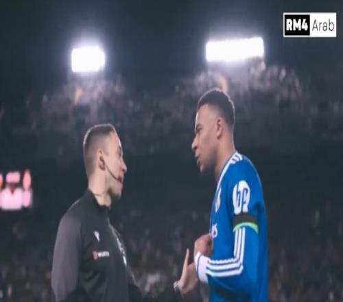 DAZN摄像机拍到姆巴佩上半场结束后与第四官员沟通。