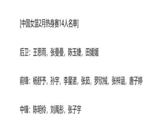 È¥ÄêµÄÈ«ÔË»áÖ®ºó£¬ÂíÉϾͽøÐÐÁËÐÂÈü¼¾µÄWCBAÅ®ÀºÁªÈü¡£¶øÔÚÁªÈü³£¹æÈü½øÐеĺó°ë¶Î£¬ÖйúÅ®Àº¾Í½øÐÐÁËÒ»´Î¼¯Ñµ£¬ÑîÊæÓè¡¢³ÂÃ÷ÁæµÈÇòԱȥµ½¹ú¼Ò¶Ó±¨µ½£¬ÑµÁ·¡£¹ú¼Ò¶ÓÒ²ÊÇÌØÒâ¸ÐлÁ˸÷¼Ò¾ãÀÖ²¿µÄÅäºÏºÍÖ§³Ö¡£¶øËæ×Å2ÔÂ1ÈÕ£¬³£¹æÈü½áÊø£¬Å®Àº¹ú¼Ò¶ÓÔٶȽøÐÐÁËÒ»ÏÂÈËÔ±µÄ΢µ÷£ºÕÅ×ÓÓî¡¢Íõ˼Óê»Ø¹é¡£¹¬Â³Ãù´øÁì14ÃûÇòÔ±£¬¿ªÊ¼ÐµÄÈÈÉíÈü¡£