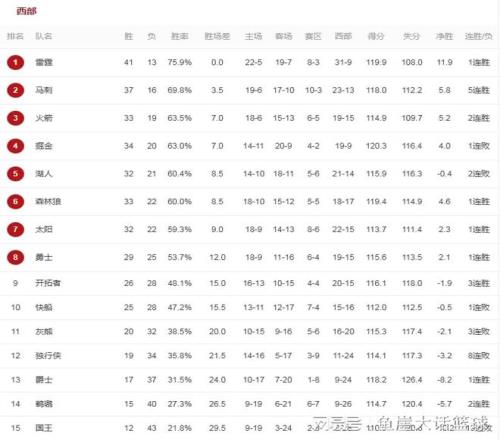 ÔÚÕⳡ±ÈÈüºóÌ«ÑôËäÈ»»¹ÅÅÔÚÎ÷²¿µÚÆßµÄλÖ㬵«ÊÇÌ«Ñô½ö½öÂäºóÎ÷²¿µÚÁùµÄÉ­ÁÖÀÇ0.5¸öʤ³¡£¬¶ÀÐÐÏÀÊäµô±ÈÈüÊÇÔâÓöÁË8Á¬°Ü£¬ÕâÑù¶ÀÐÐÏÀÒÔ19ʤ34¸ºµÄÕ½¼¨ÅÅÔÚÎ÷²¿µÚÊ®¶þµÄλÖ᣺þÈËÔÚ½ñÌìµÄ±ÈÈüÖжÔÕóÂí´Ì£¬±¾³¡±ÈÈüºþÈËÊDZ³¿¿±³³öÕ½£¬ËùÒÔ±¾³¡±ÈÈüղķ˹¡¢Àï·ò˹ºÍ¶«ÆõÆæ¶¼½«È±Ï¯±ÈÈü£¬¶øÔÚÕⳡ±ÈÈüÀïÎİàÑÇÂíÊÇ´ó·¢ÉñÍþ£¬·´¹ÛºþÈËÔÚ±ÈÈüÖнø¹¥×´Ì¬Ò²²»ÊǺܺã¬ËùÒÔÕⳡ±ÈÈüÒ²ÔçÔçʧȥÐüÄ×îÖÕÂí´ÌÒÔ136-108´óʤºþÈË£¬¶øÔÚÕⳡ±ÈÈüÀïÎİàÑÇÂí¸üÊǺäÏÂÁË40·Ö12Àº°å2Öú¹¥µÄÊý¾Ý¡£