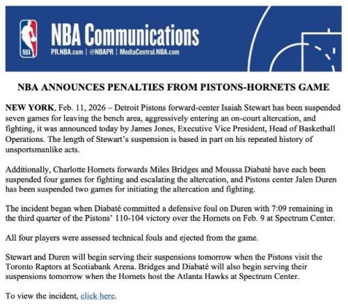 Èç½ñNBAÀºÇòÔËÓªÖ´Ðи±×ܲüæÖ÷¹Üղķ˹-Çí˹ÕýʽÐû²¼Öذõ·£µ¥£¬ÆäÖÐ˹ͼ¶ûÌØÒòΪÀë¿ªÌæ²¹Ï¯ÇøÓò£¬¼¤½ø³åÍ»³¡ÄÚ½éÈë³åÍ»£¬²¢ÇÒ²ÎÓëȺʱ»½ûÈü7³¡¡£Ö®ËùÒÔ˹ͼ¶ûÌØ½ûÈü³¡´Î×î¶à£¬²¿·Ö»ùÓÚËû¹ýÍù¶à´ÎÎ¥·´ÌåÓýµÀµÂÐÐΪµÄÀúÊ·£¬²Î¿¼¹ýÍùÓÂʿ׷ÃθñÁÖ±»½ûÈüµÄ°¸Àý£¬Ò²ÊÇÒòΪÂŽ̲»¸Äµ¼Ö±»ÖØ·£¡£