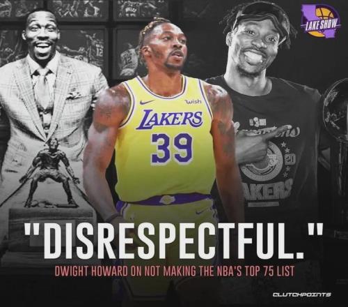 作为曾经的NBA第一中锋,霍华德也算荣誉满身,20年跟随湖人夺冠,3次DPOY,8次最佳阵容,5次最佳防守阵容,5次篮板王,2次盖帽王,8次全明星,1枚奥运会金牌等等,可能唯一遗憾的就是落选75大巨星。