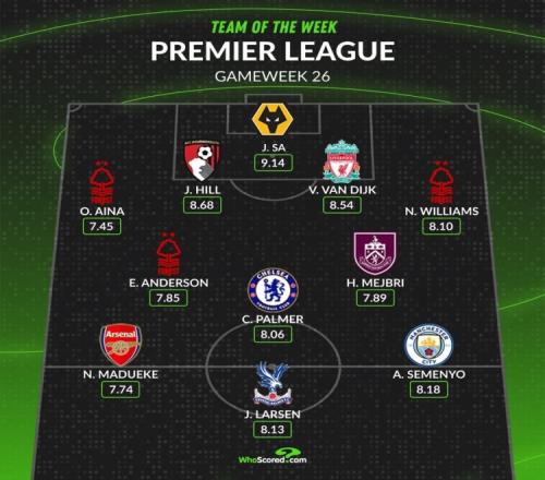 ÌåÓý²¥±¨2ÔÂ13ÈÕÐû Ó¢³¬µÚ26ÂÖÒѾÍêÈü£¬whoscoredͳ¼ÆÁ˱¾ÂÖÓ¢³¬×î¼ÑÕóÈÝ£¬Åµ¶¡ººÉÁÖ3ÈËÈëΧ¡£