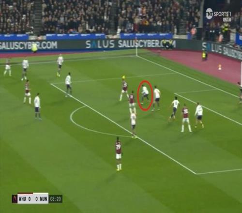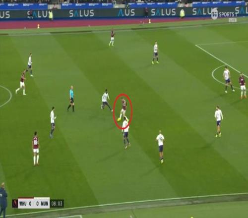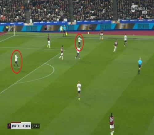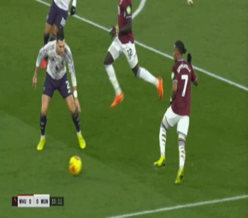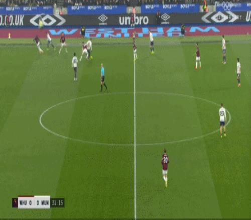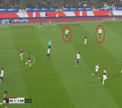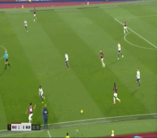 ¶øÔÚÕâ¸öʱºò£¬ÂüÁªµÄºóÎÀÏßÒѾ­Í˵½Á˽ûÇøÏßǰ£¬ÕâʹµÃ×óÖÐÎÀÀûÉ£µÂÂÞ-Âí¶¡ÄÚ˹ÎÞ·¨¶¥³ö£¬Ö»ÄÜ¿´×ű«ÎÄÔÚË«ºóÑüÖ®¼ä˳ÀûµÃÇò£º