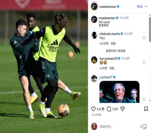 体育播报2月15日宣 阿森纳小将道曼今天更新Instagram,晒照庆祝回归训练。