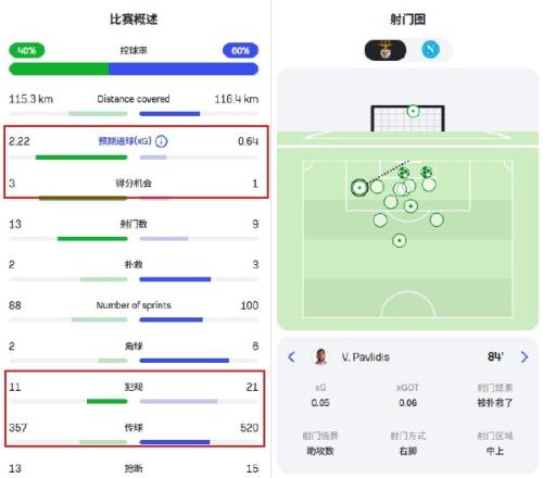 从统计数据也可以看到,那场与那不勒斯的较量穆里尼奥是完胜。虽然传球数只有对方的6成多,放弃了一部分控球权的本菲卡却是踢得极为简练高效。