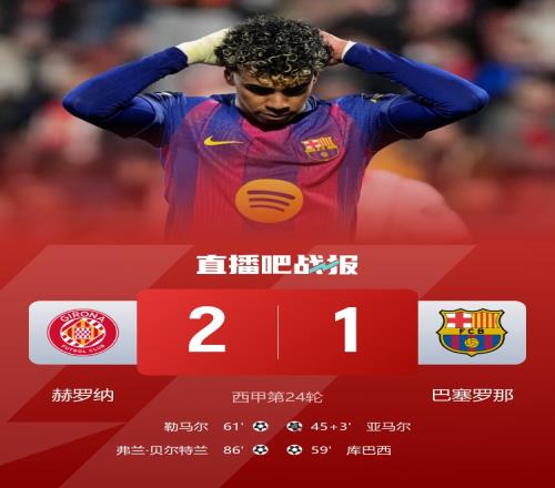 西甲第24轮,巴萨1-2不敌赫罗纳。