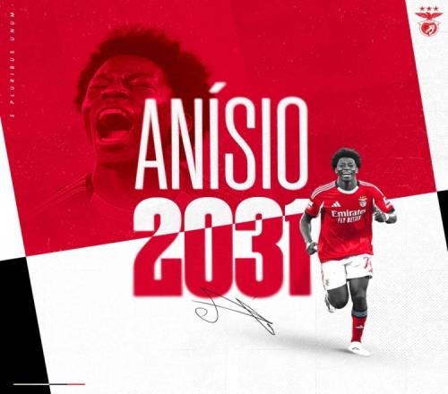 官方:本菲卡与18岁小将阿尼西奥续约至2031年,解约金1亿欧