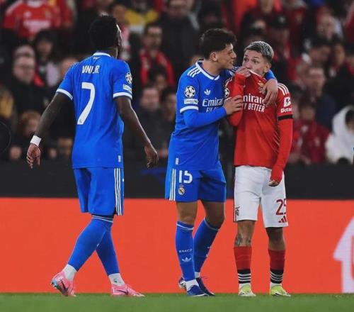 更荒诞的剧情还在上演:补时阶段,阿根廷世界杯冠军成员奥塔门迪竟然向维尼修斯亮出了自己的冠军纹身,两人相视而笑——这是挑衅?是嘲讽?还是一种诡异的“尊重”?而在球员通道外,本菲卡主席鲁伊·科斯塔甚至被曝与皇马工作人员发生肢体冲突。