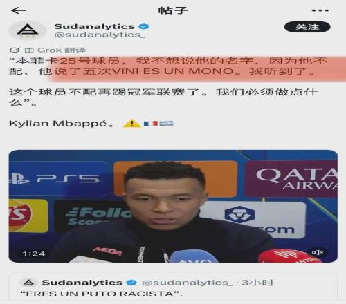 正方: 姆巴佩赛后面对镜头掷地有声:“我亲耳听到了,对方25号球员先后叫了维尼修斯5次‘猴子’。”这不仅是队友的声援,更是将歧视坐实的致命一击。维尼修斯在替补席上的愤怒与无奈,看台上飞来的电子烟和杂物,似乎都在佐证这并非空穴来风。