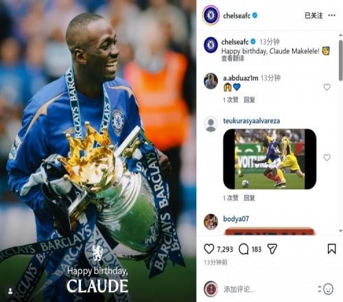 体育播报2月18日宣 今天是法国足坛名宿马克莱莱的53岁生日,老东家切尔西为他庆生。