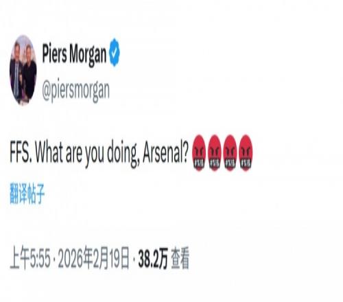 此役阿森纳一度2-0领先,但最终痛失好局。英国名嘴、阿森纳球迷摩根社媒写道:“真是够了,你们到底在搞什么,阿森纳?”