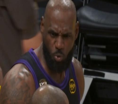 很是不解!湖人第三节最后一攻詹姆斯接球冲筐被吹走步