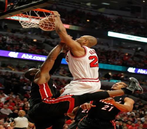 2011年是吉布森相对来说最高光的赛季,他在诺阿和布泽尔都受伤的情况下撑起公牛的内线,并在东决首战上隔着巅峰韦德来了一记势大力沉的暴扣。