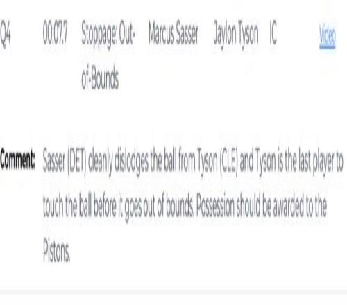 最终,骑士加时119-122不敌活塞,他们本有可能在常规时段就锁定胜局,但连续遭遇关键误判,而且最后时刻犯错,让詹金斯得到了三罚的机会(裁判报告证实这一判罚没有问题),把比赛拖入加时。加时赛中,活塞表现更出色,拿下胜利。本场因伤缺阵的哈登和米切尔只能在场边目睹球队加时惜败的结局。