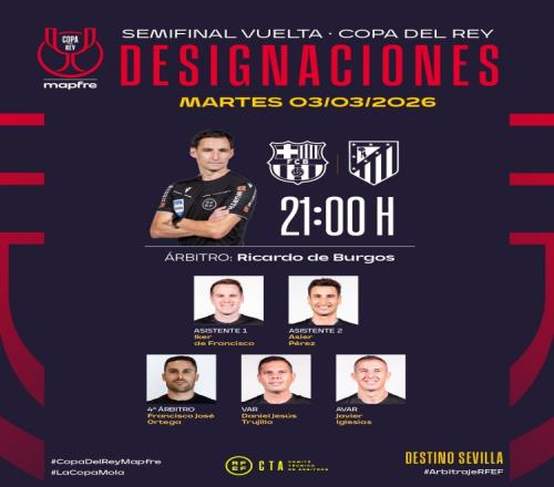 体育播报3月2日宣 北京时间3月4日凌晨4:00,国王杯半决赛次回合,巴萨将坐镇主场迎战马德里竞技。赛前,西班牙足协官方公布了本场比赛裁判安排,里卡多·德·布尔果斯执法。