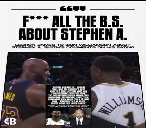 A-史密斯的原话是:“我没有编造任何东西…… 你知道有酗酒的、吸毒成瘾的那些人。那锡安的问题是什么?食物!他是食物成瘾!笑话就是,新奥尔良每个会做饭的人 —— 餐馆、厨师、你奶奶,全都认识锡安,他也认识他们……有人跟我说,他被抓到把食物藏在床底下。”