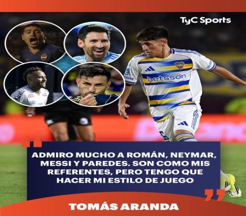 体育播报3月5日宣 在博卡青年对阵拉努斯的比赛中首次首发出场并取得胜利后,博卡小将托马斯·阿兰达谈到了他的足球榜样。