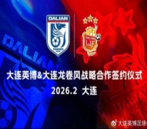体育播报2月9日宣 大连英博俱乐部官方消息,大连英博足球俱乐部与大连龙卷风足球俱乐部战略合作签约仪式在大...